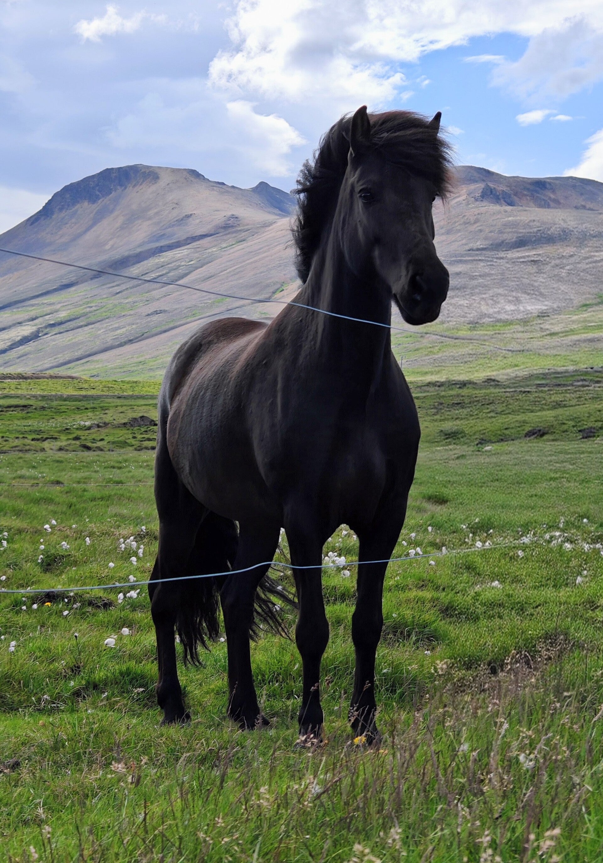 His mother Þyrnirós frá Akrakoti, is very powerful and beautiful mare after the famous stallion Skaginn frá Skipaskaga.